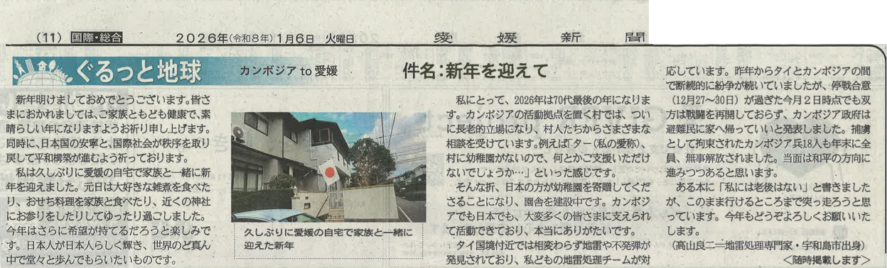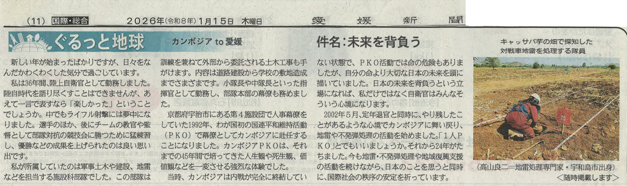 2023年12月18日付 愛媛新聞「地雷の脅威除去支援を」