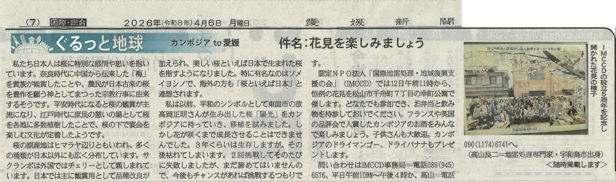 2026年4月6日付 愛媛新聞「花見を楽しみましょう」