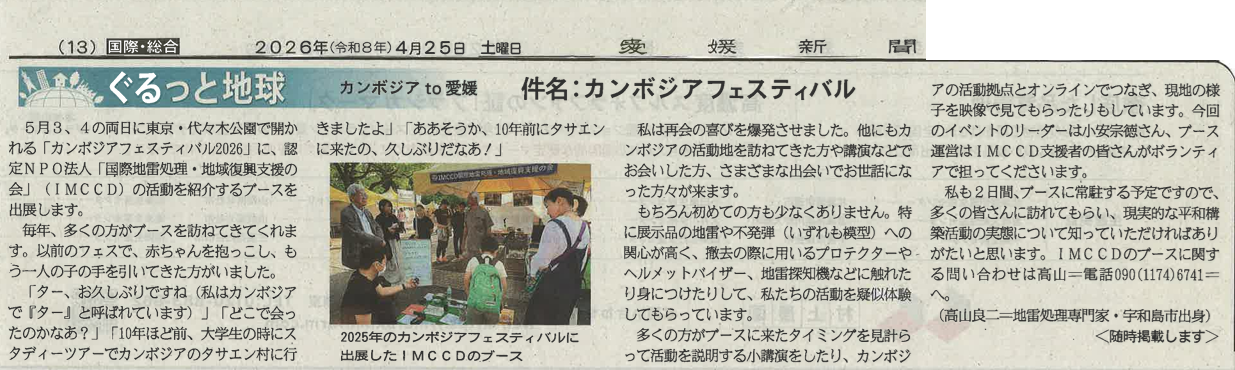 2026年4月25日付 愛媛新聞「カンボジアフェスティバル」