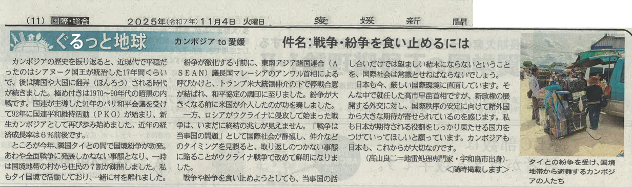 2025年11月4日付 愛媛新聞「戦争・紛争を食い止めるには」