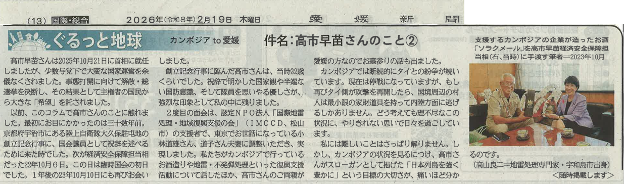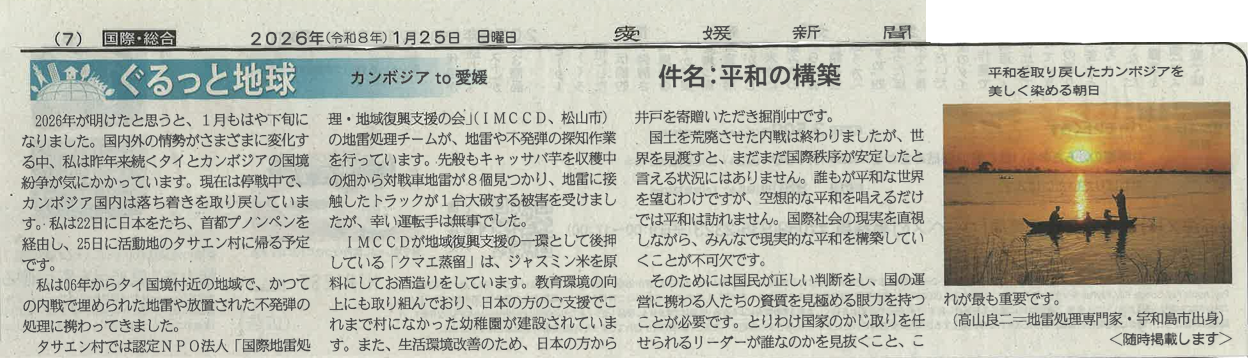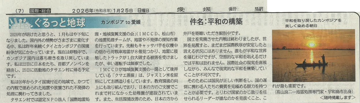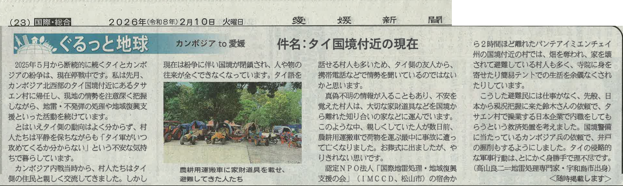 2023年12月18日付 愛媛新聞「地雷の脅威除去支援を」