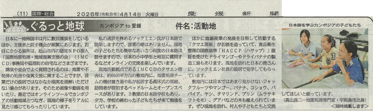 2026年4月14日付 愛媛新聞「活動地」