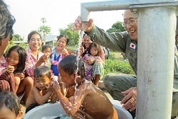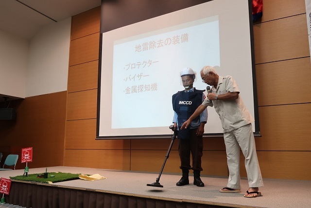 The locals are producing potato-based vodka ("shochu" in Japanese) labeled "Sora Khmer" made of cassava planted at fields where mines were removed. We are providing technical advices to improve its quality and increase sales. We are looking at high-quality brewing and hope to see the drink made from the previous minefield becomes a proud of Cambodia and symbol of peace.